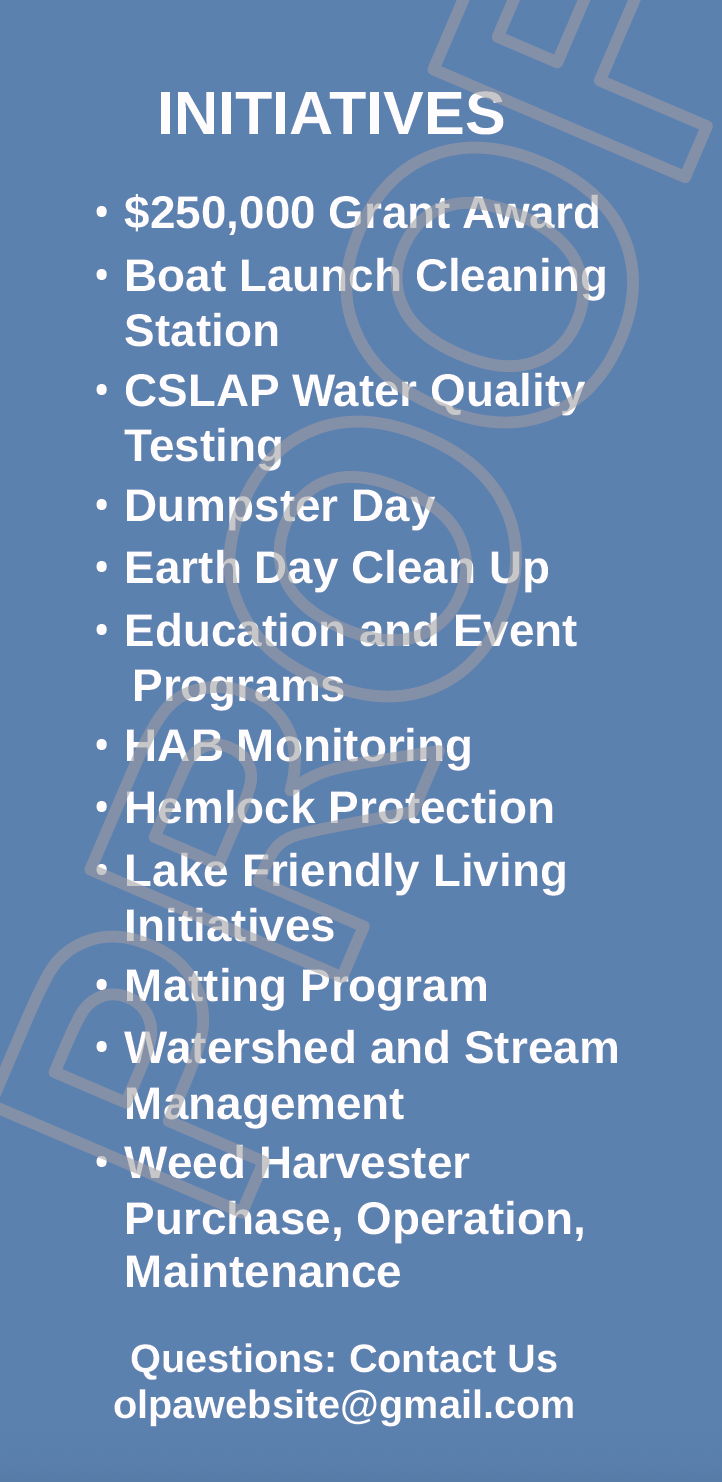 In 2024, OLPA became a membership driven organization. Benefits of membership include actively engaging in voting rights and decision-making processes to collaboratively prtect the lake. Last year, our membership totaled 300 members. In 2025, we expanded the membership levels and set our goal of $35,000. This year, Mary Brown and the committee raised over $70,000. Her volunteers went door-to-door, solicited residents and participated in community events to drive membership.